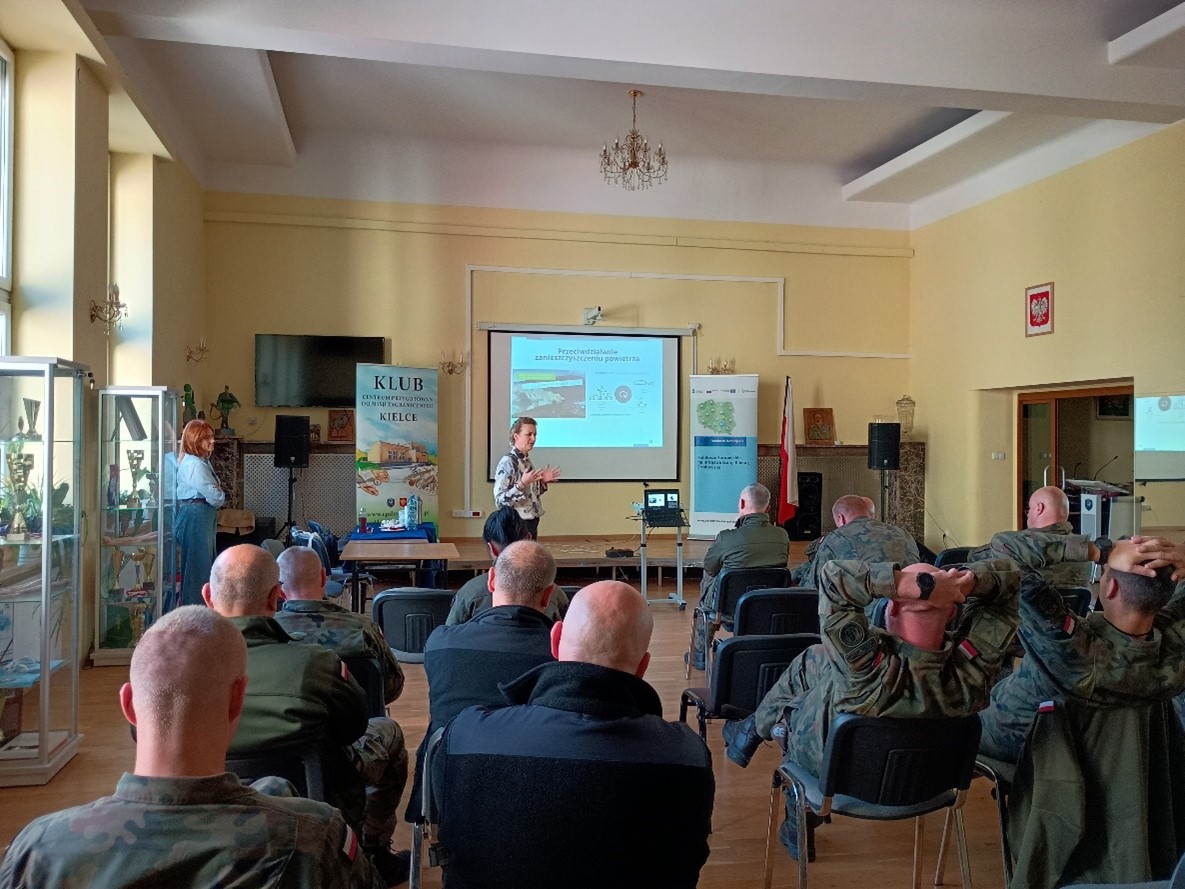 W dniu 2 października 2025r . Doradcy Energetyczni z WFOŚiGW w Kielcach przeprowadzili szkolenie pt.: „Zanieczyszczenia powietrza przyczyny, skutki, przeciwdziałanie” dla żołnierzy 10. Świętokrzyskiej Brygady Obrony Terytorialnej. Odbyło się ono w Klubie Centrum Przygotowań do Misji Zagranicznych w Kielcach, w godzinach 11:30 -13:00.